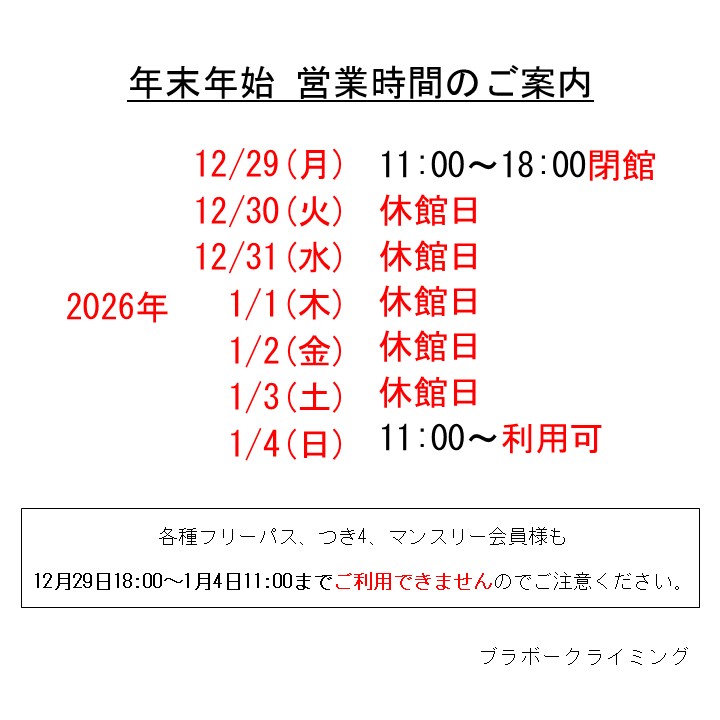 お知らせ2025年12月2日年末年始 営業時間のお知らせ